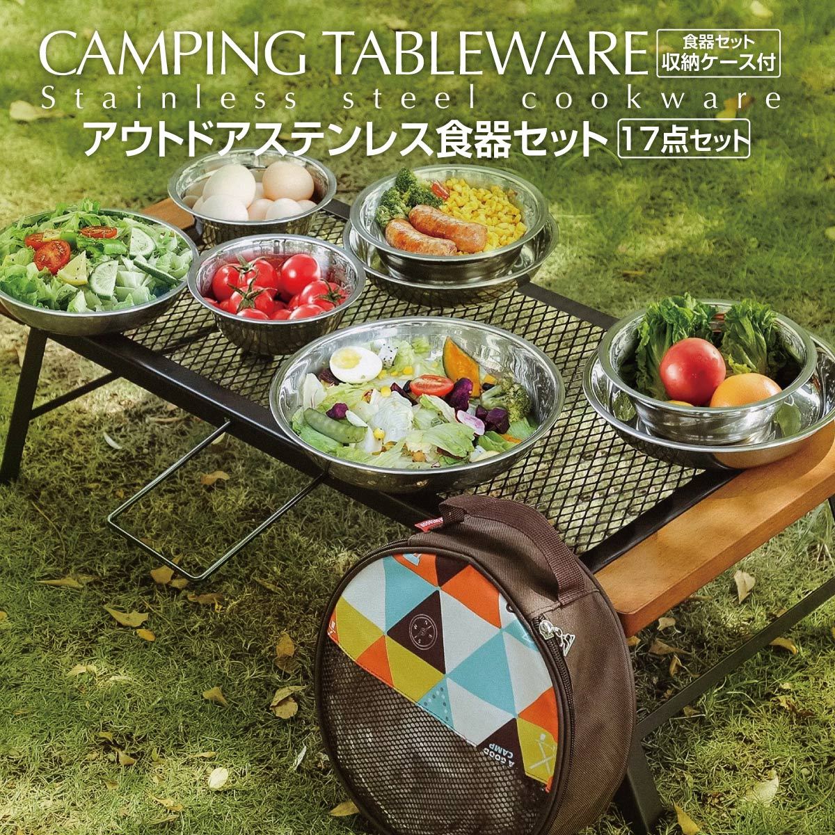 アウトドア 食器セット 皿セット 17枚 ボウル プレート ステンレス キャンプ バーベキュー BQQ tableware01