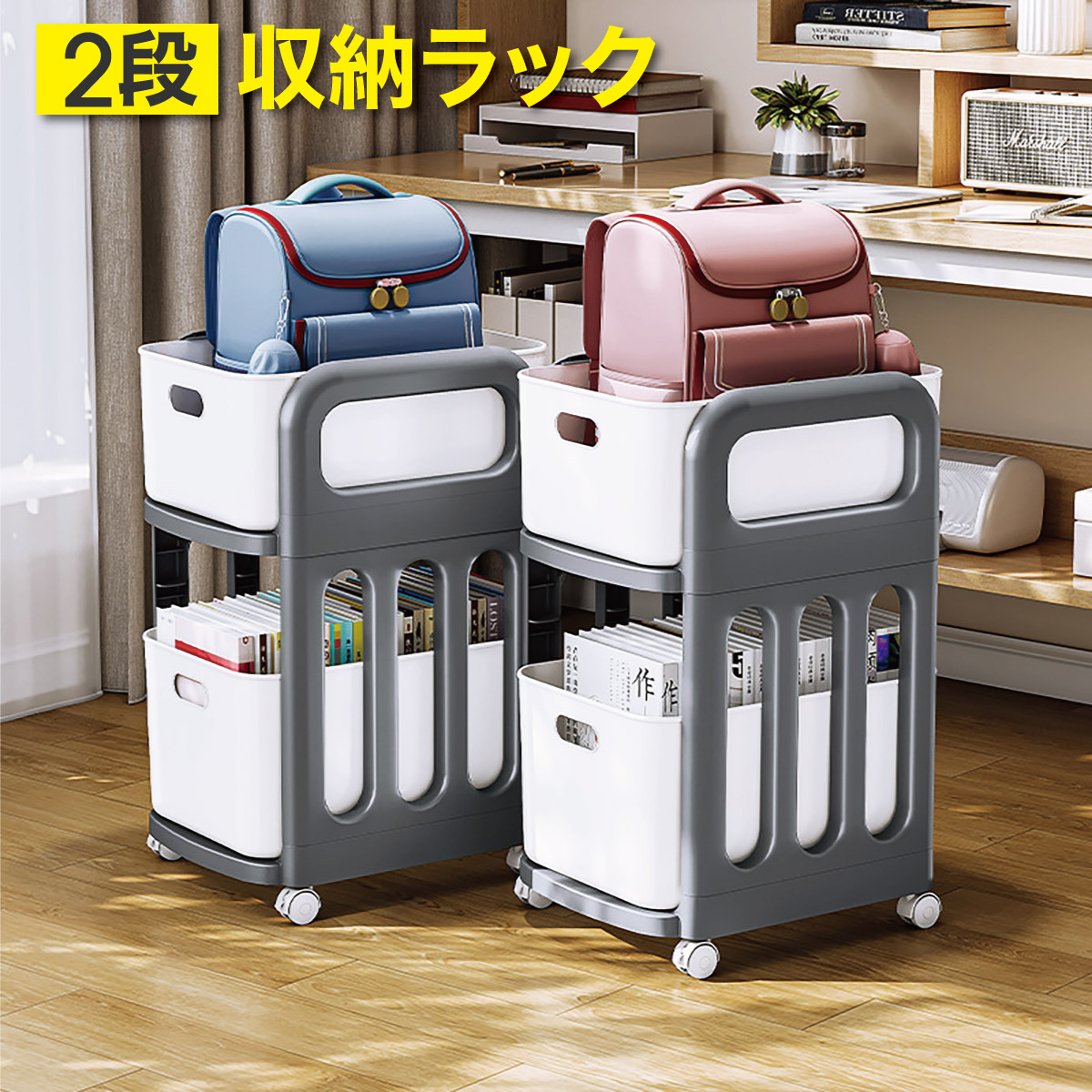 ランドセル収納ラック キャスター付き 2段 収納ラック ランドセルラック ワゴン 収納 テーブル下 リビング デスク 収納ワゴン コンパクト シンプル two-rack
