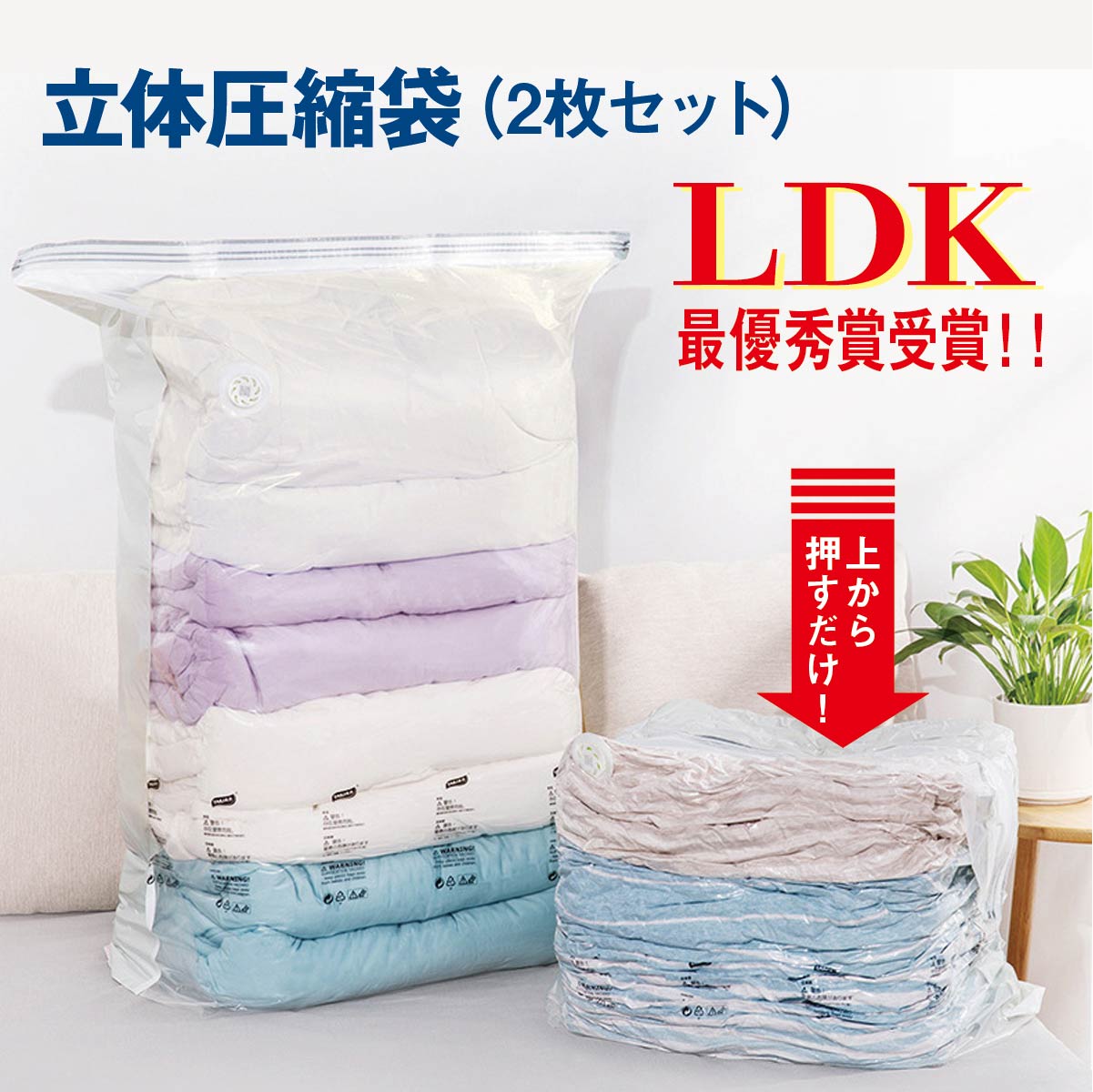 圧縮袋 衣類 押すだけ 掃除機不要 2枚セット立体圧縮袋 手押し収納 カビ対策 防カビ ポンプ不要 衣類収納 vc-bag-02