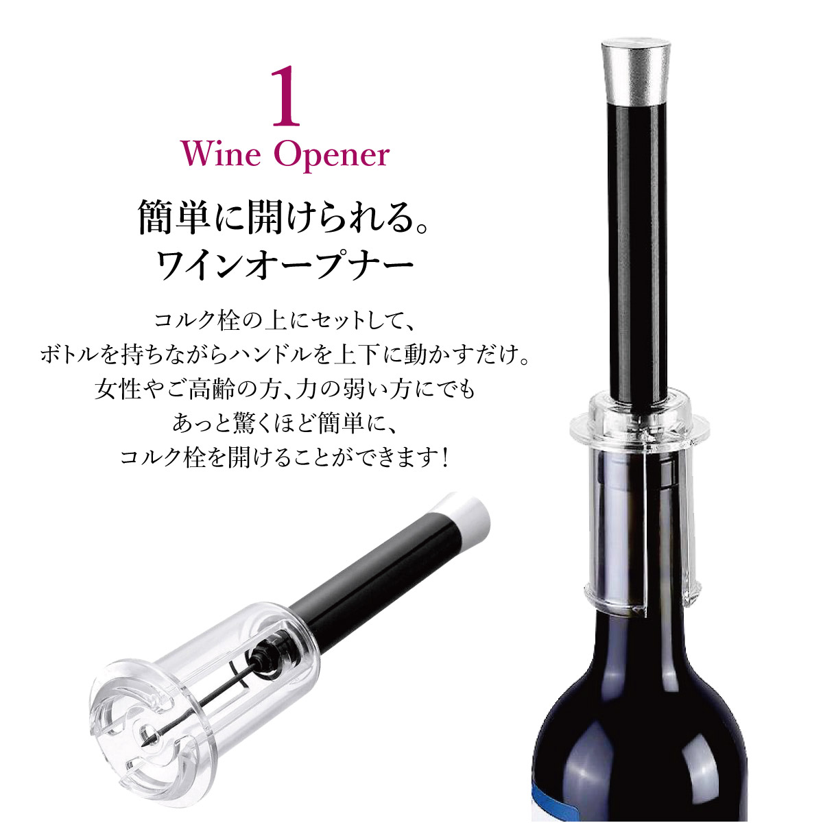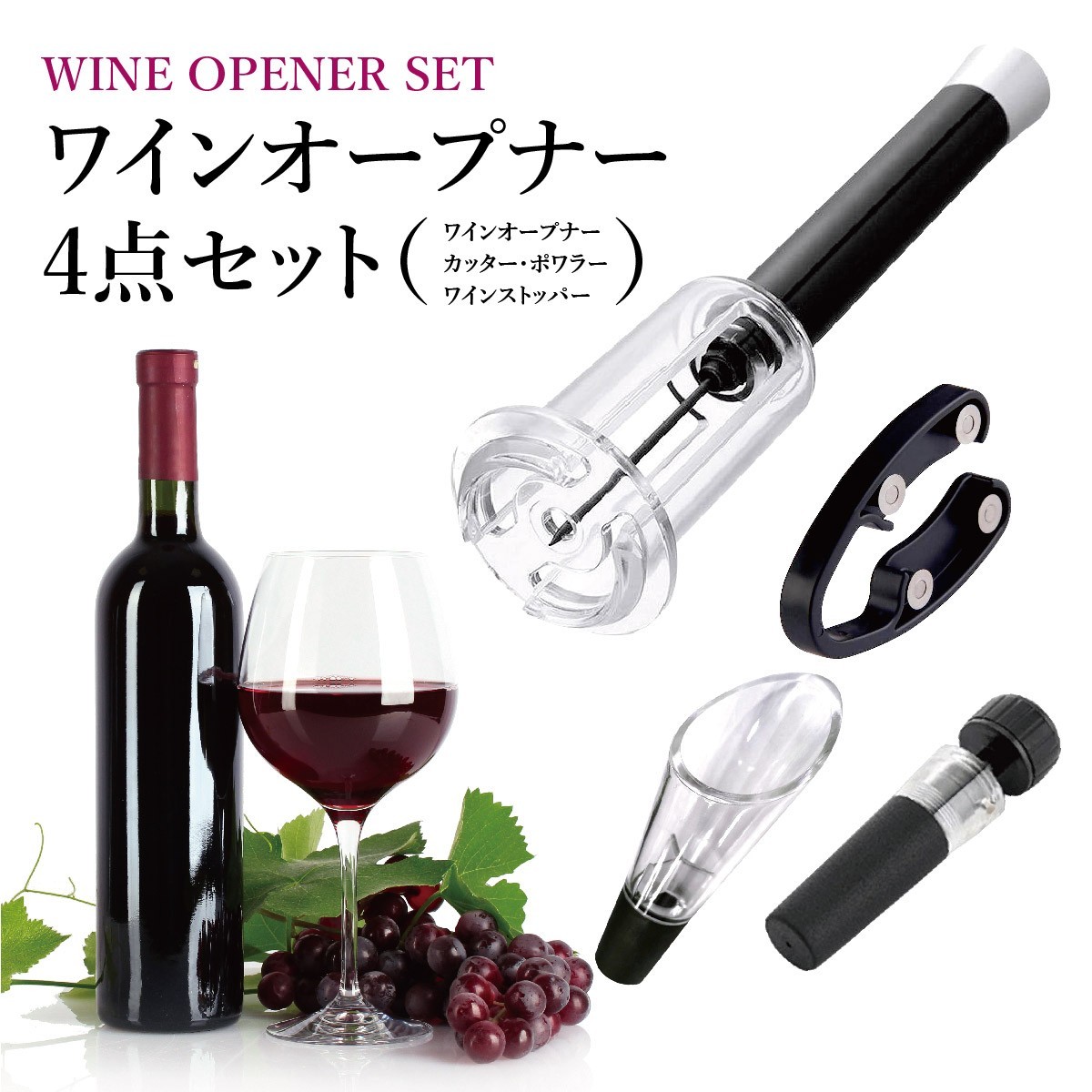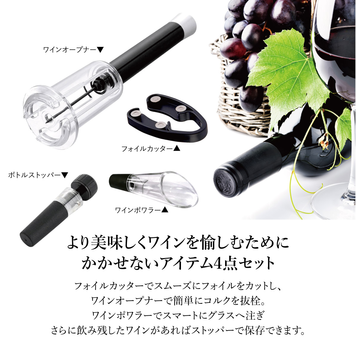 ワインオープナー ワインオープナー ワイン オープナー エアー 4点セット ワインオープナー ホイルカッター ポワラー ワインストッパー wine-opener02