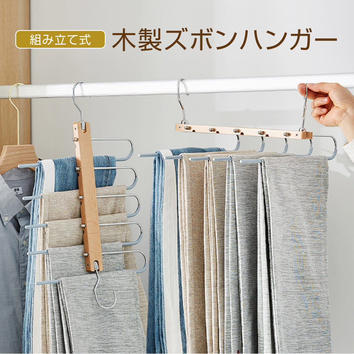 ズボンハンガー 5連 木製 スラックスハンガー ズボン ハンガーラック ハンガー 便利グッズ 便利 新生活 zubon-hanger02