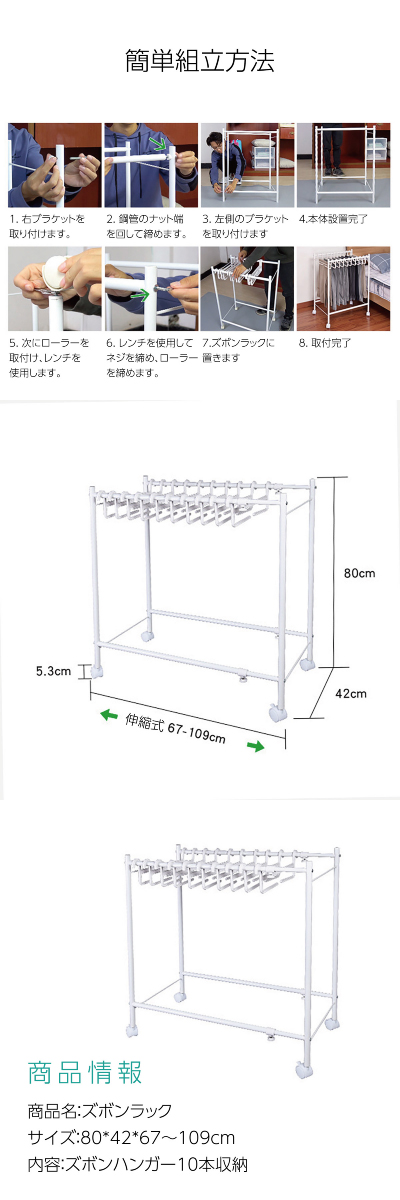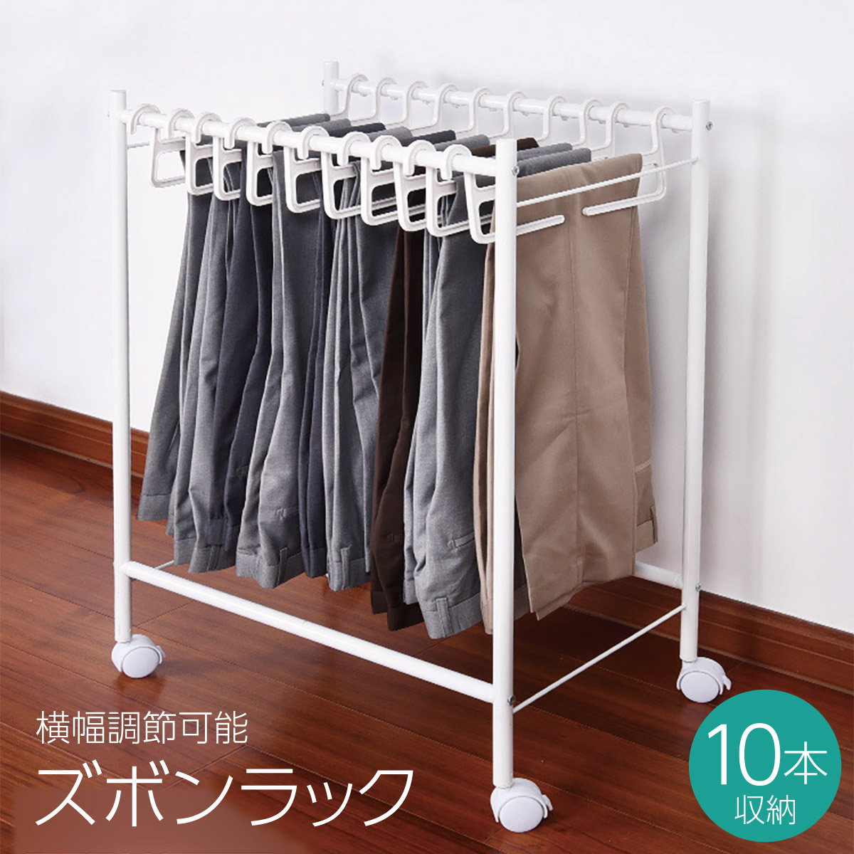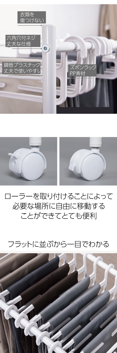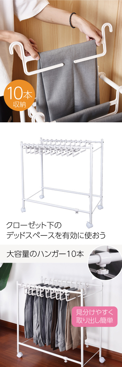 ズボンハンガーラック スラックスハンガー 10本収納 キャスター付き 省スペース ズボン ハンガーラック 便利グッズ 便利 新生活 zubon-r02