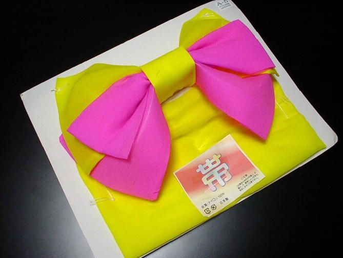 ナイロン100%・婦人用浴衣結び帯です。箱が少し壊れているのと、一部にごく小さい点のような汚れがございますがその分安価に提供いたしております。
