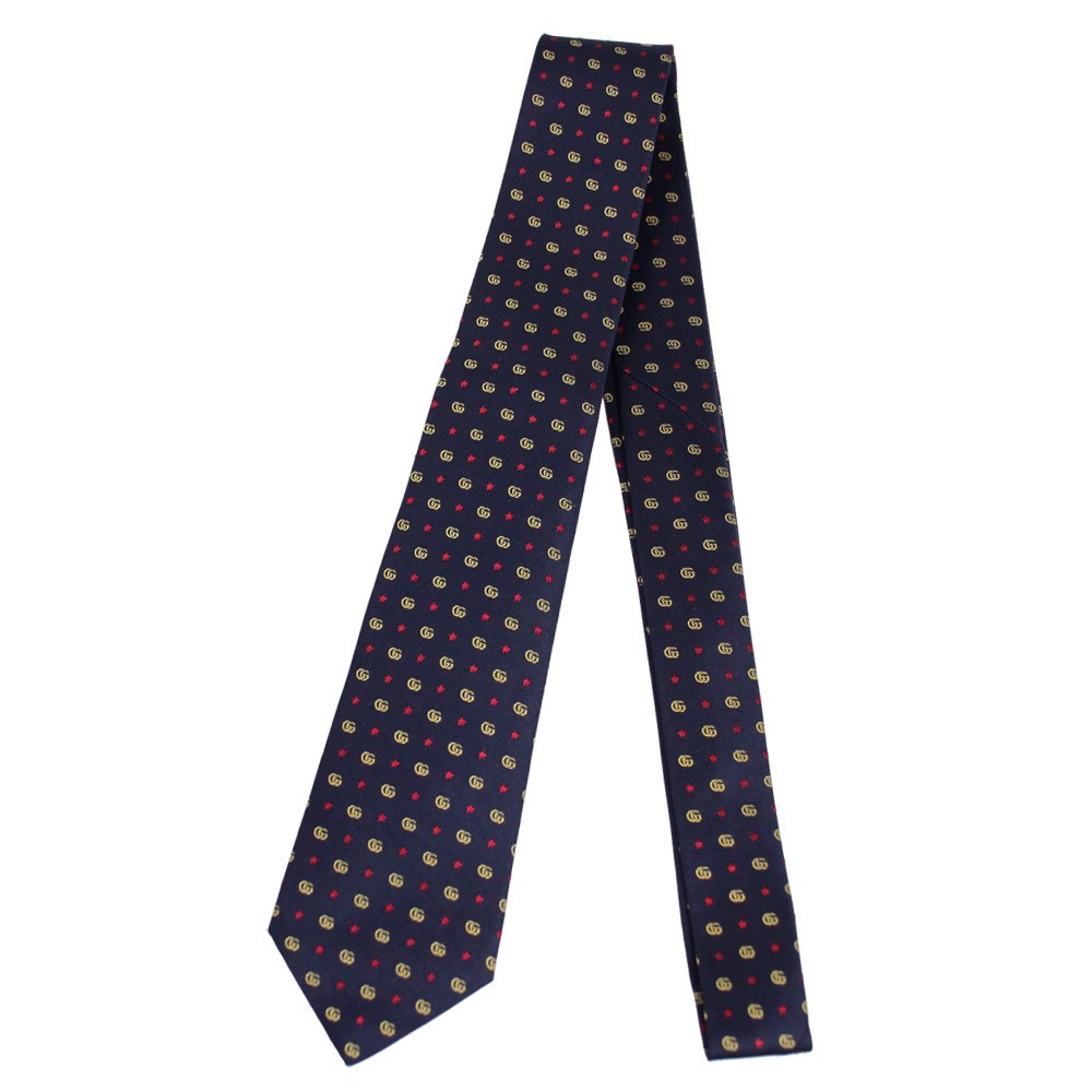 グッチ ネクタイ GUCCI シルク100% GG柄 スター ネイビー系 672466 4E002 4274