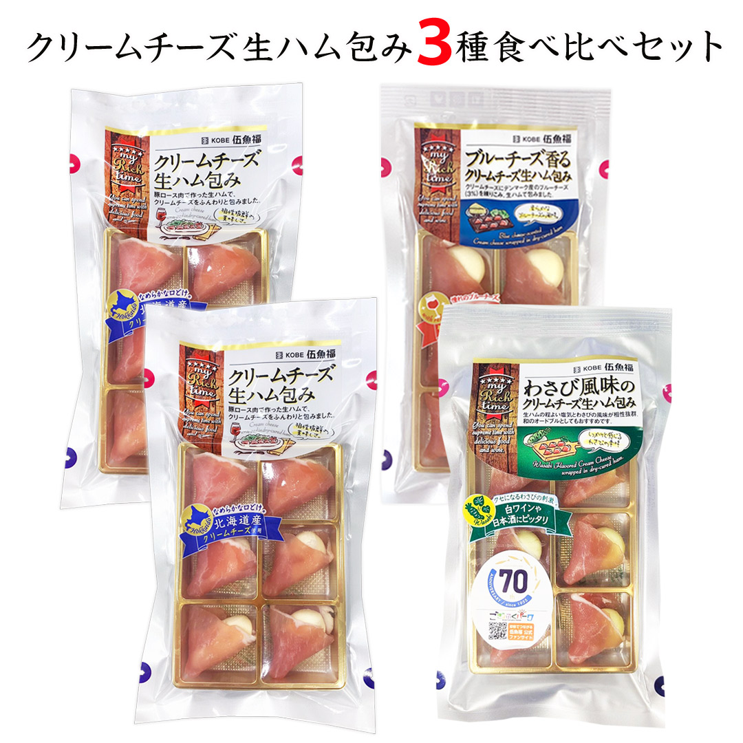 3種の味わいを食べ比べ。本セットは、いつもの「クリームチーズ生ハム包み」に加えて