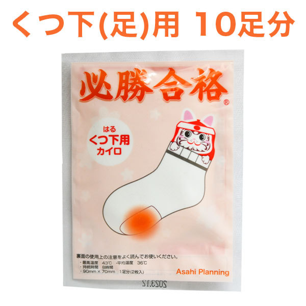 必勝合格カイロくつ下用(足用)(合格祈願シール入り)10足分【使い捨てカイロ・足用カイロ・合格祈願・受験・学業成就・靴下用】
