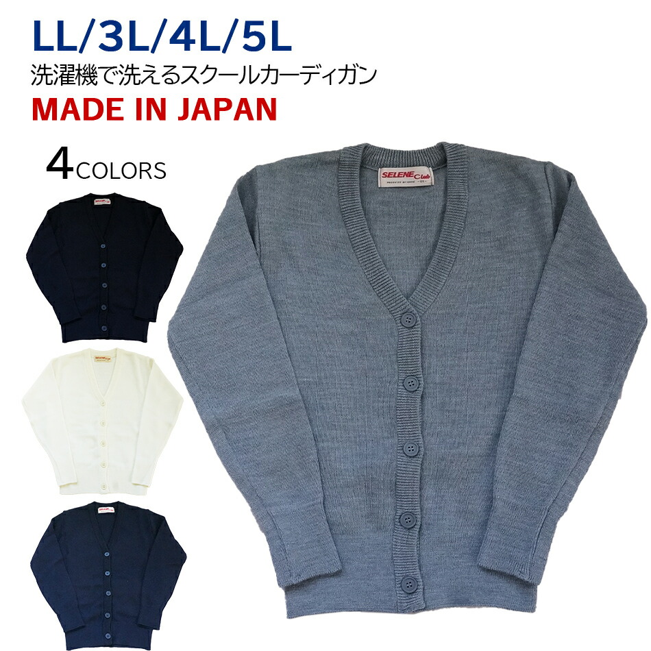 中高校生 409 スクール カーディガン 女の子 黒 濃紺 アイボリー グレー 洗えるウール 毛70% アクリル30% 秋冬 LL 3L 4L 5L 通学 防寒 日本製