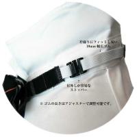 首周りは馴染みの良い幅広ゴムです。アジャスターで長さの調整が可能です。