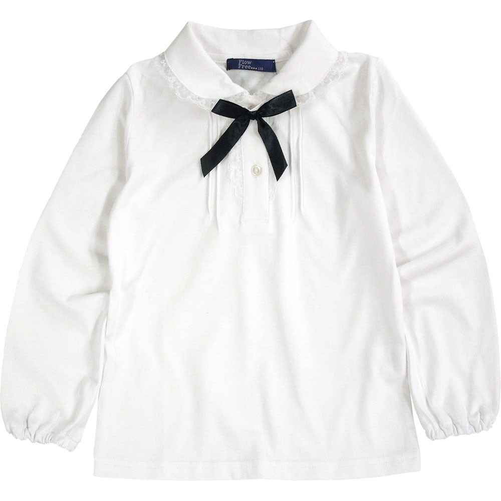 訳あり リボン付きキッズブラウス 長袖 白 子供服 女の子 130 1114b 少々難あり