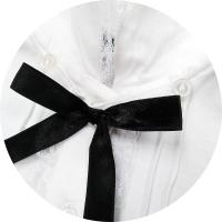 胸元にはレースとピンタックをあしらい華やかに仕上げました。リボンは付け外しが出来ます。