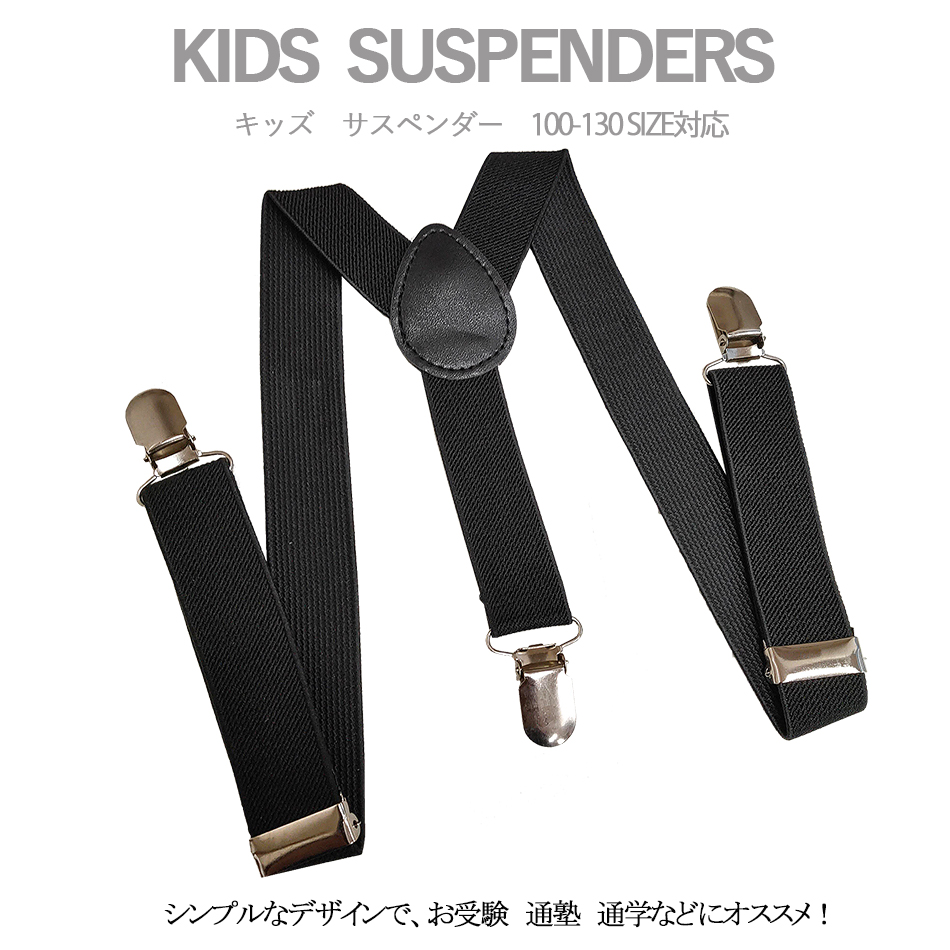 子供服サスペンダー 黒 金属クリップ 25mm幅 身長100cmから130cm対応 3105sasu