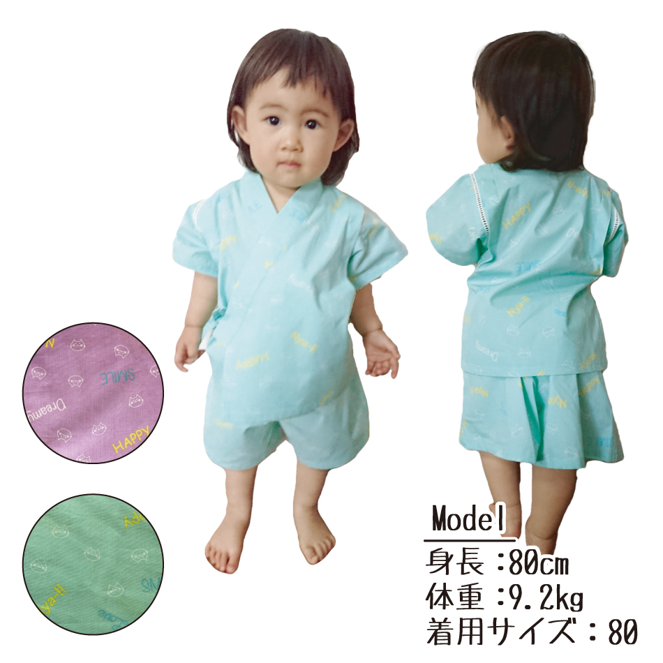 人気のねこ柄 甚平2点セット