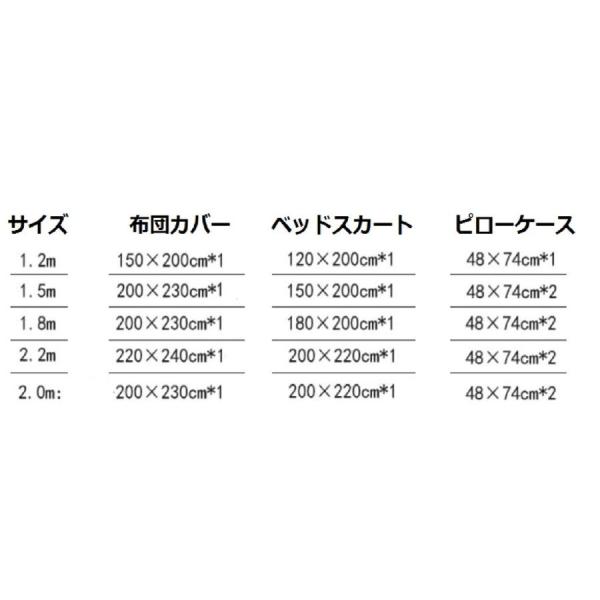 4点セット:布団カバーX1、ベッドスカートX1、枕カバーX2