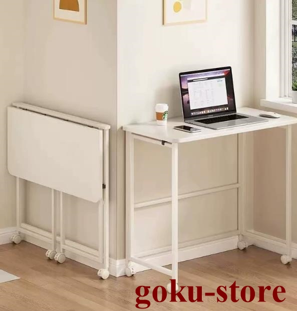 折りたたみテーブル デスク 60cm×40cm 折り畳み スリム 省スペース パソコンデスク 作業台 ハイタイプ 高さ75cm キャスター付き 完成品
