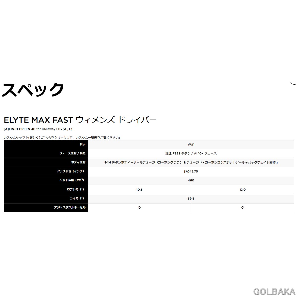 即納可能「h」108148【新品】【レディス】 キャロウェイ ELYTE MAX FAST ウィメンズ ドライバー [A]LIN-Q GREEN 40 for Callaway LDY エリート [w53]