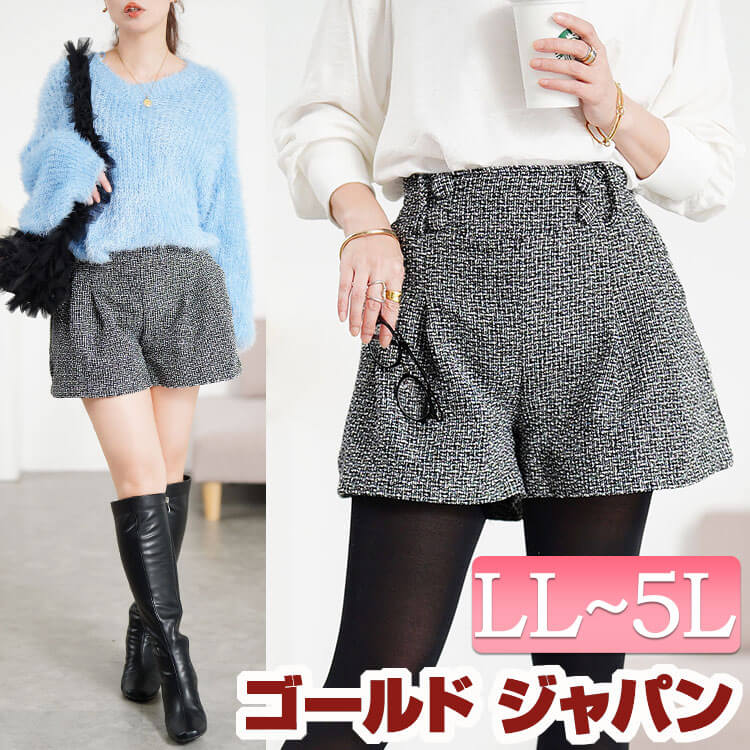 【商品名】 大きいサイズ レディース ツイードフレアショートパンツ