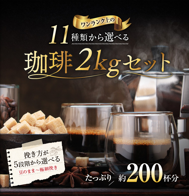送料無料 コーヒー コーヒー豆 粉 福袋 2kg 飲み比べ 香り立つ 選べる 11種類の珈琲セット 500g×4 200杯 ブレンド 新鮮 香り豊か drip coffee