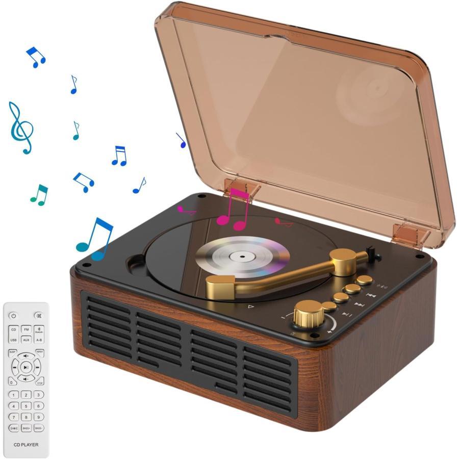 CDプレーヤー Bluetooth5.0 ステレオ スピーカー レトロ クラシック CDラジカセ 睡眠モード A-Bリピート USB/FM/AUX 語学学習 音楽鑑賞 防塵カバー 日本語説明書