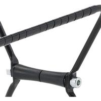 自転車の車輪をそっと乗せるだけ、とっても簡単ディスプレイスタンド 自転車のタイヤを車輪受け枠の間に差し込むだけで、 車重で車輪受け枠が左右均等に挟み込み、自転車を自立させる構造です。 左右の車輪受け枠幅を調整することなく、異なるタイヤ種類(タイヤ幅)に対応します。 ※ロード用タイヤからマウンテンバイク2.25インチ幅まで対応。 スポークの損傷を和らげるために、車輪受け枠の干渉する部分に 樹脂製のスリットチューブを巻きつけています。