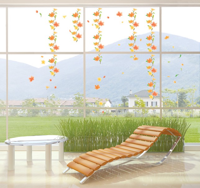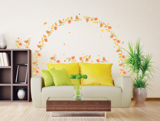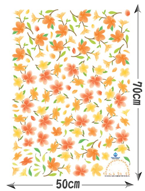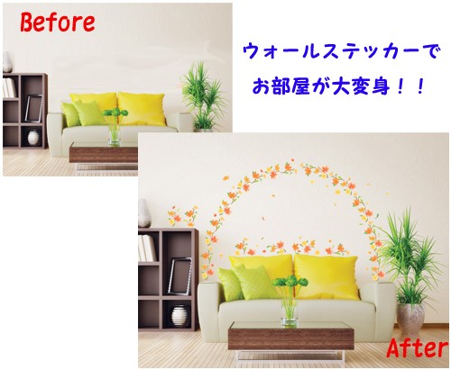 オレンジやイエローの優しい色合いが魅力の、ナチュラルフラワーウォールステッカーです。