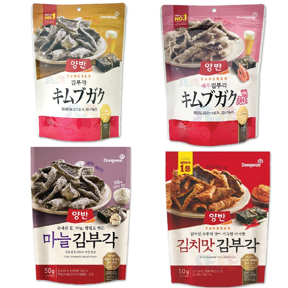 4種から選べる ヤンバン キムブガク のり天 オリジナル・エビ・ガーリック・キムチ味 各50g / 韓国海苔 韓国食品 東遠ジャパン 両班 キム ブガク
