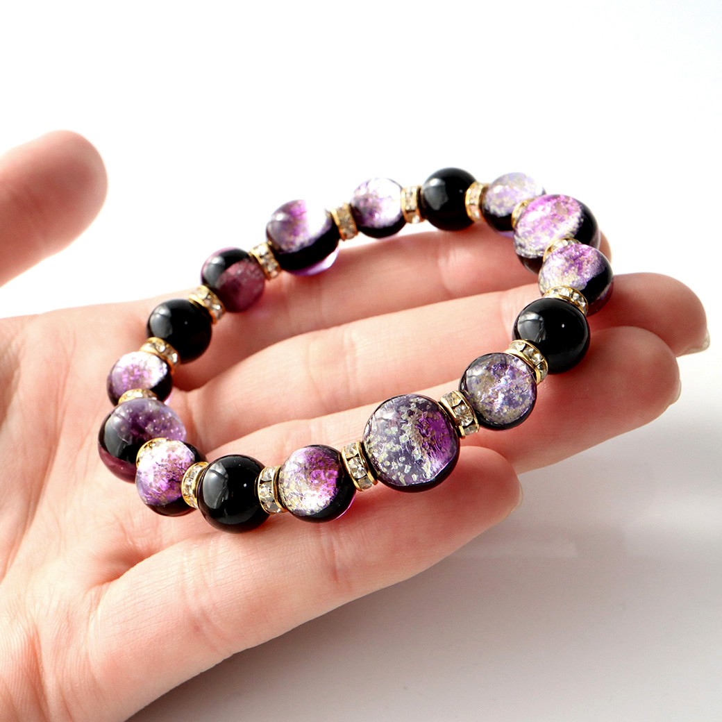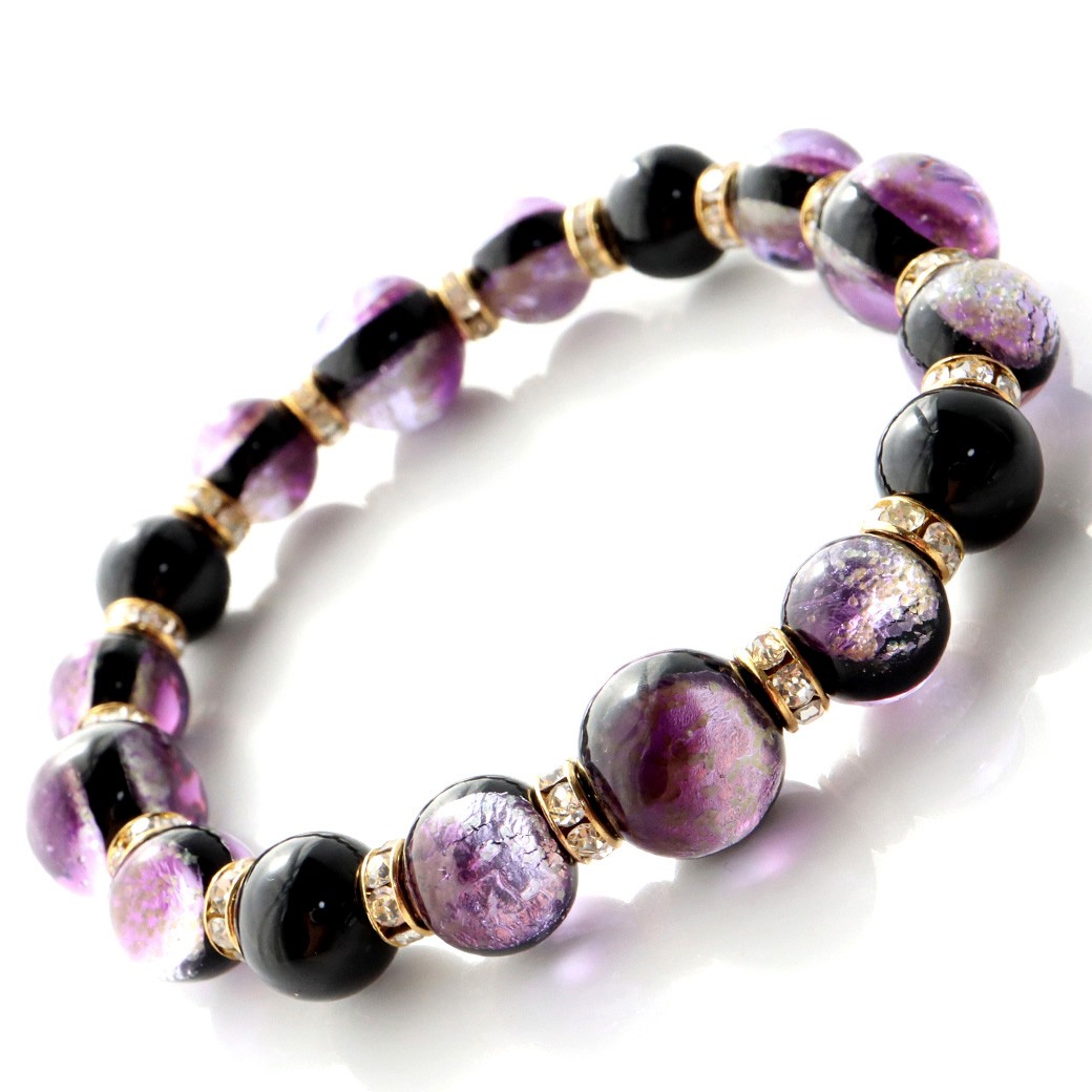 光る ホタルガラス マリンパープル 紫 ブレスレット メンズ レディース 沖縄 人気 お土産 パワーストーン 送料無料 贈り物 ギフト 贈り物 爆買 クリスマス