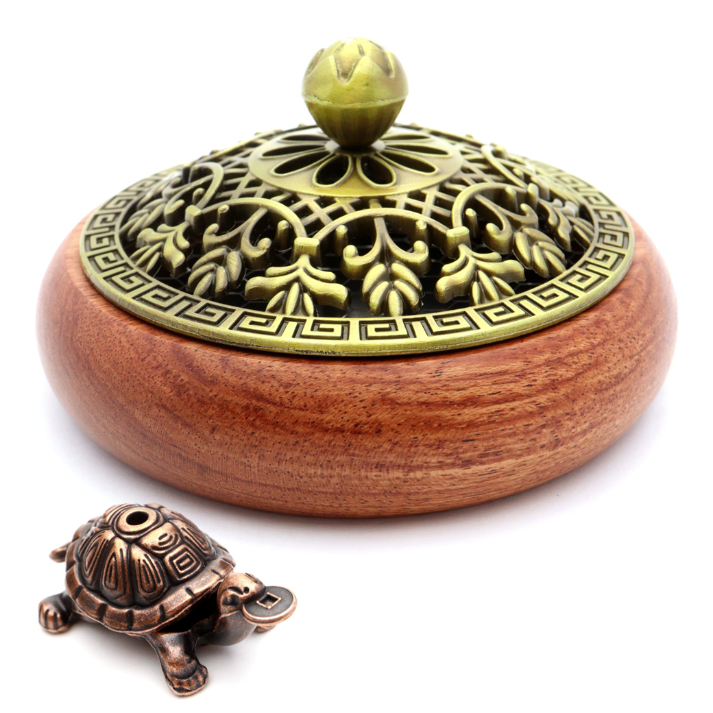 香炉 おしゃれ お香立て 蓋付き 丸型 渦巻型 うずまき 線香 対応 置き台 ローズウッド使用 灰がこぼれない お盆 アロマ ギフト 受け皿 素敵 仏壇 爆買