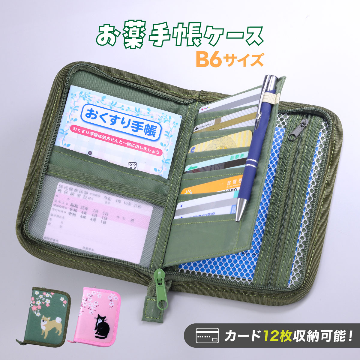 まとめて!お薬手帳ケース キャラクター ネコ 柴犬 かわいい おくすり 軽量 カード入れ12枚 母子手帳 診察券 保険証入れ 通院 病院