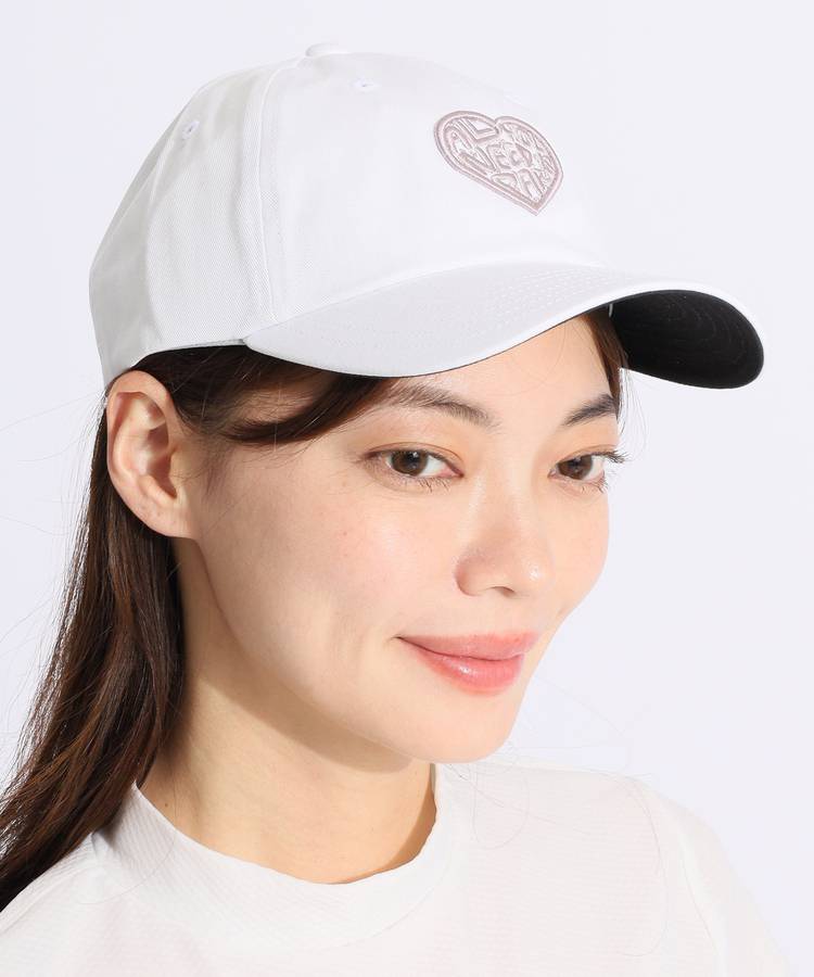 ロゴを押し込んだハート型のフロント刺繍が可愛いコットンキャップ。ガーリー&カジュアルで、どこか抜け感もあるテイストがこなれたアイテム♪ カラーリングも可愛く、コーディネートのポイントとして活躍します。バックのブランドマーク刺繍も後ろ姿のポイントに。カラーは3色。さらっとソフトなコットンツイル素材。ベーシックな生地感でロングシーズン活躍します。スベリはメッシュ地で通気性が良く、汗をかいても快適な着用感をキープ。スナップバック仕様のアジャスターでサイズ調節が可能です。