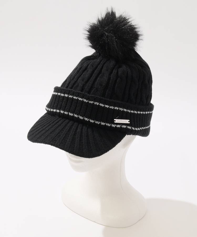 キャロウェイ ポンポン付きラメラインケーブル編みニットキャップ ゴルフウェア レディース 秋冬 ゴルフ女子 CURUCURU