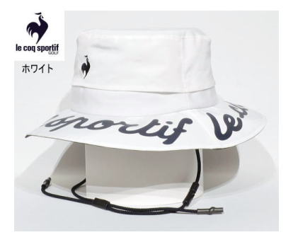ルコックスポルティフゴルフの【まぶガード】ひも付きハットです。