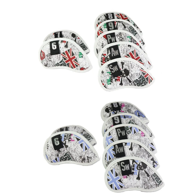 【メール便配送無料7個セット】 番手#6〜S アイアン ヘッドカバー スカル イギリス 国旗 ドクロ 骸骨 PUレザー レッド ブルー CBA004 【ゴルフ】
