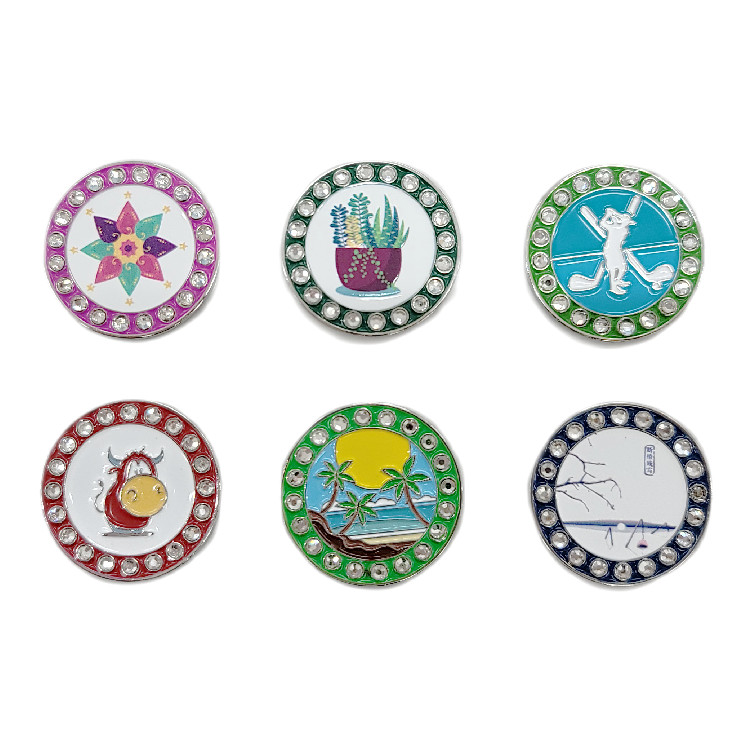 マグネットクリップ付き メタルグリーンマーカー コンペ 景品 かわいい おしゃれ キラキラ ビジュー ハットクリップ マーカー ゴルフ CBA019