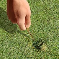●二本足フォークよりも芝を傷つけず、スッと刺せます。