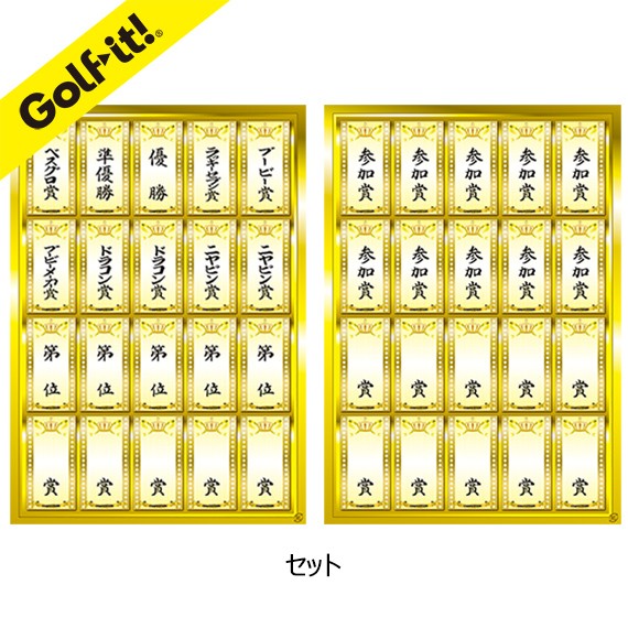 内容(セット)優勝、準優勝、ベスグロ賞、ニヤピン賞×2、ドラコン賞×2、ブービー賞、ブービーメーカー賞、ラッキーセブン賞、第〇位×5、参加賞×10、自由に書き込める〇○賞×15の40枚セット 【第 位】 40片入(20片×2シート) 【賞】 40片入(20片×2シート) |