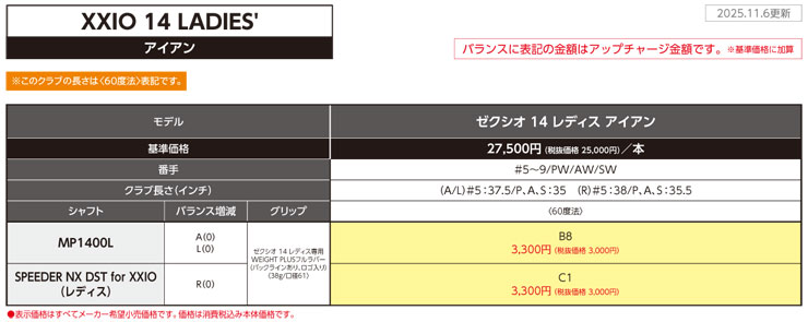 ゼクシオ14 レディス:2025年12月6日、ゼクシオ14 左用は2026年1月17日を予定しております。