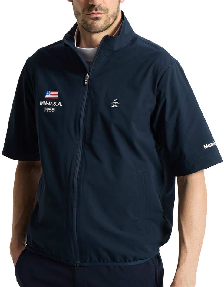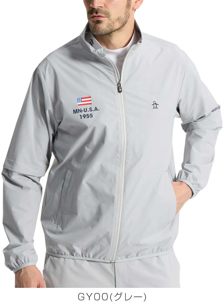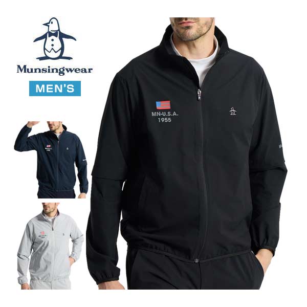 Munsingwear マンシング アパレル オススメ おすすめ ゴルフ ゴルフ用品 ウエア 洋服 男性用 メンズウェア アウター トップス 上着 ジャケット ジップアップ はっ水 撥水 2WAYストレッチ 着回し 袖取り外し 高機能 レギュラーシルエット ブラック グレー ネイビー 黒 紺 灰色 MW26SSWEAR