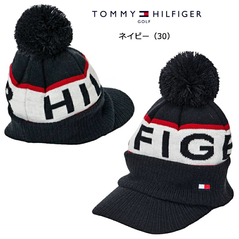 トミーヒルフィガー ゴルフ キャップ ニット帽(THMB4F53)2025秋冬 帽子 つば付 ボンボン