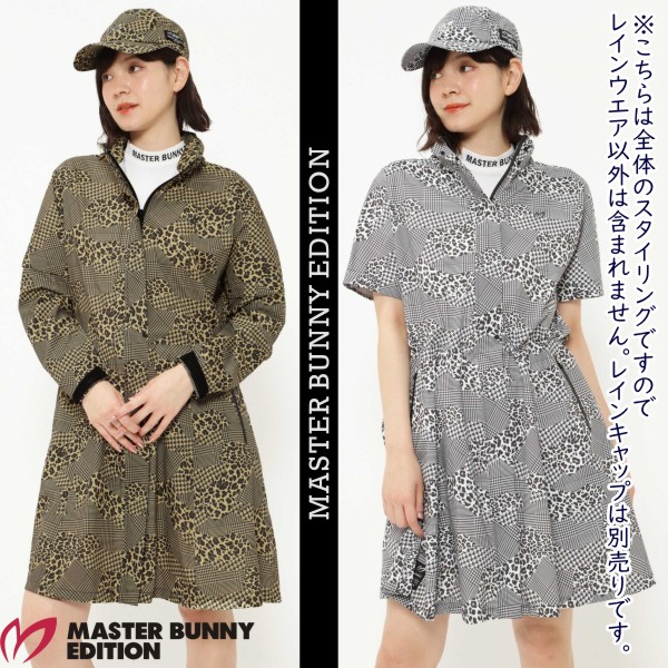 【premium choice 40%off】マスターバニーbyパーリーゲイツ MASTER BUNNY EDITION ナイロン2.5L レディス グレンレオパード柄 レインワンピース 758-2988408/24C
