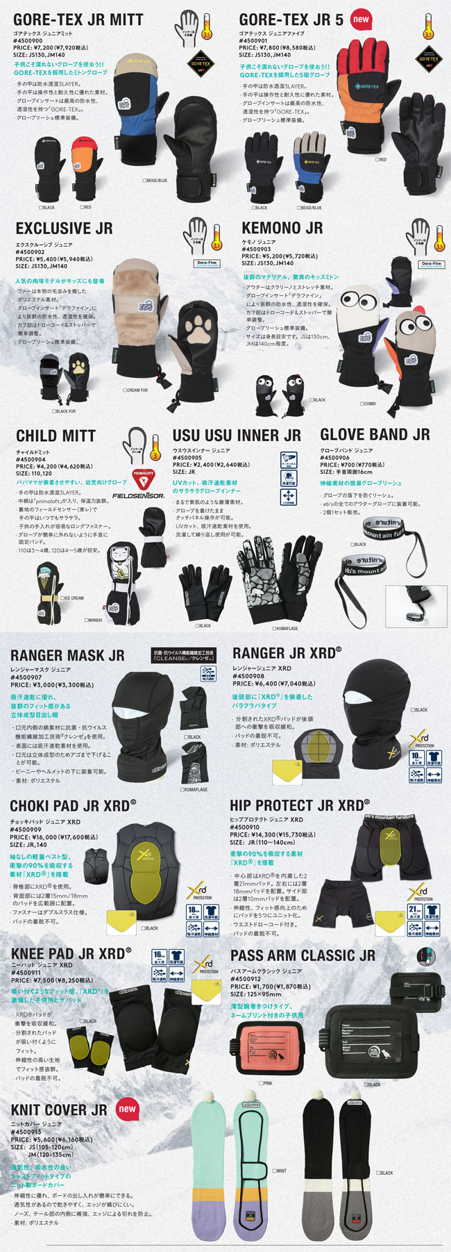 ▼ eb's(エビス)の「GORE-TEX JR 5(ゴアテックス ジュニアファイブ)」は、GORE-TEXを採用した防水透湿・高保温のジュニア用5本指スノーグローブ。濡れずに快適、操作性抜群でライディングも安心。寒さ知らずでガンガン滑りたいキッズにぴったりの子供用GORE-TEXモデルです。
