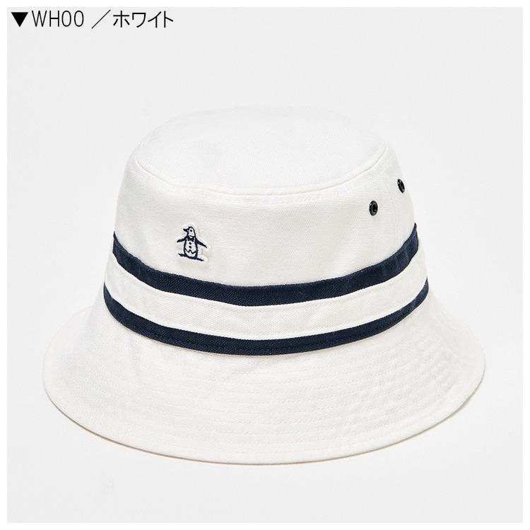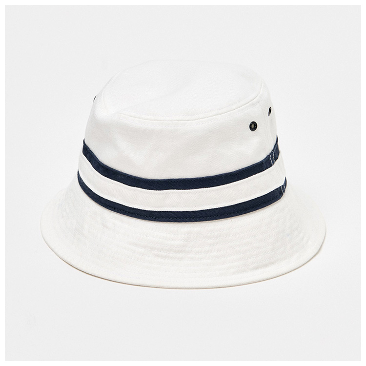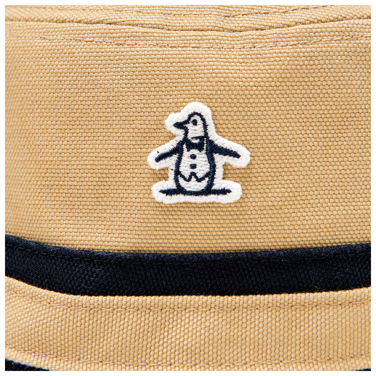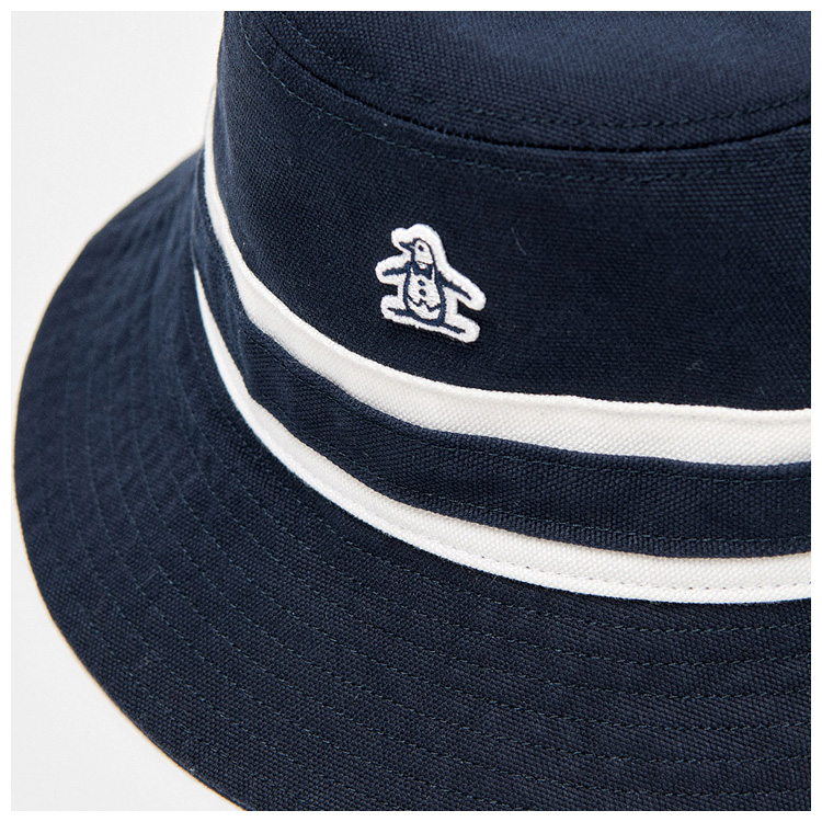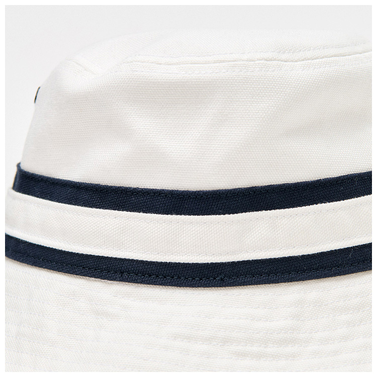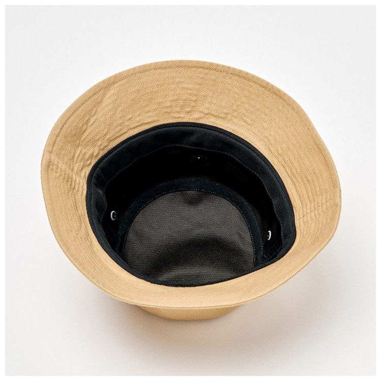 つばが短めで、逆さにしたバケツのフォルムに似ていることから命名されたバケットハット。太番手のオックス素材を使用し、ヘリ巻き部分上下のパイピングがデザインポイント。内側でサイズ調節が可能。