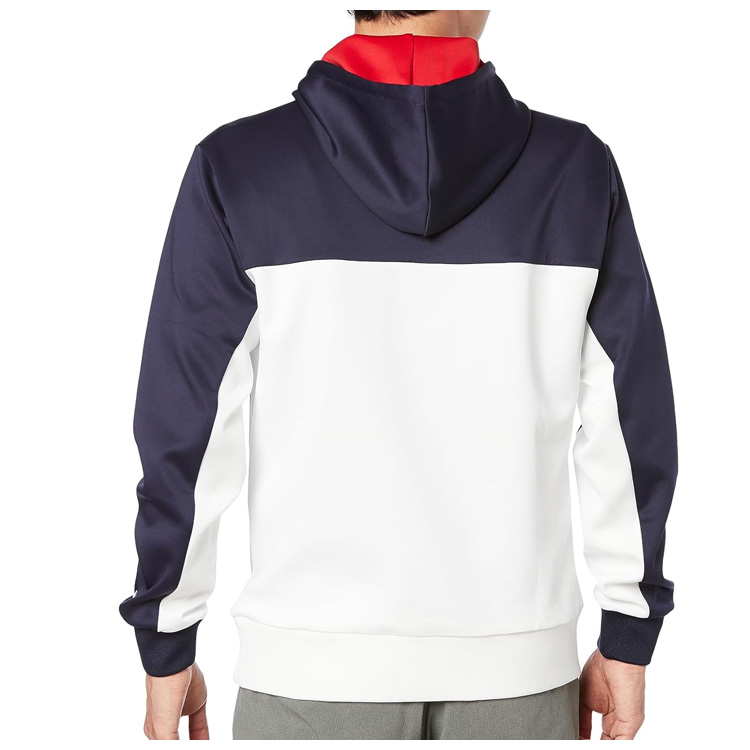 カジュアル間のあるスウェット素材を使用したパーカーで伝統のトリコロールの配色の中でも着やすい配色感のアイテムになっています。