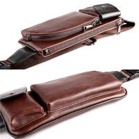高級感のあるレザー調仕上げの縦型ボディバッグ。