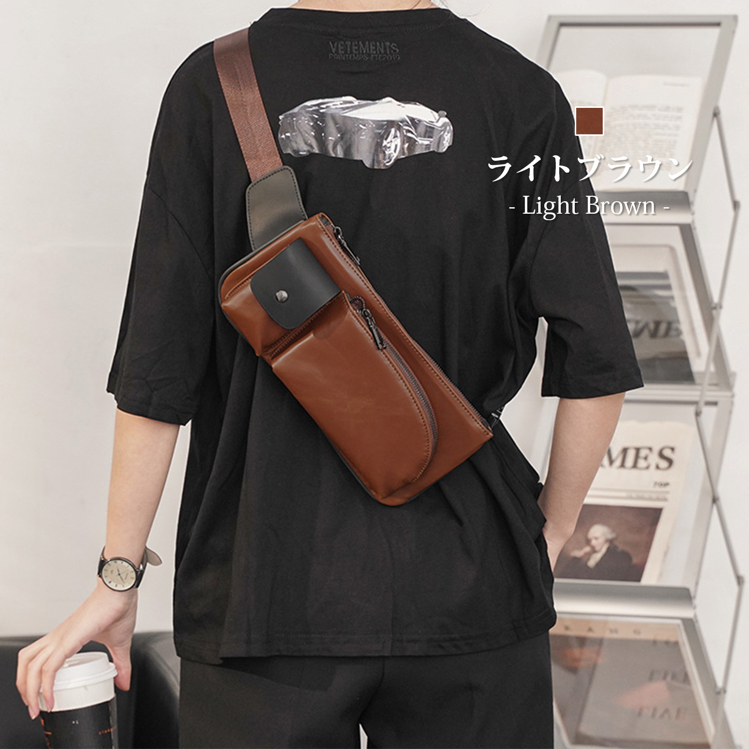 斜め掛けスタイルで動きやすく、タウンユースに最適。