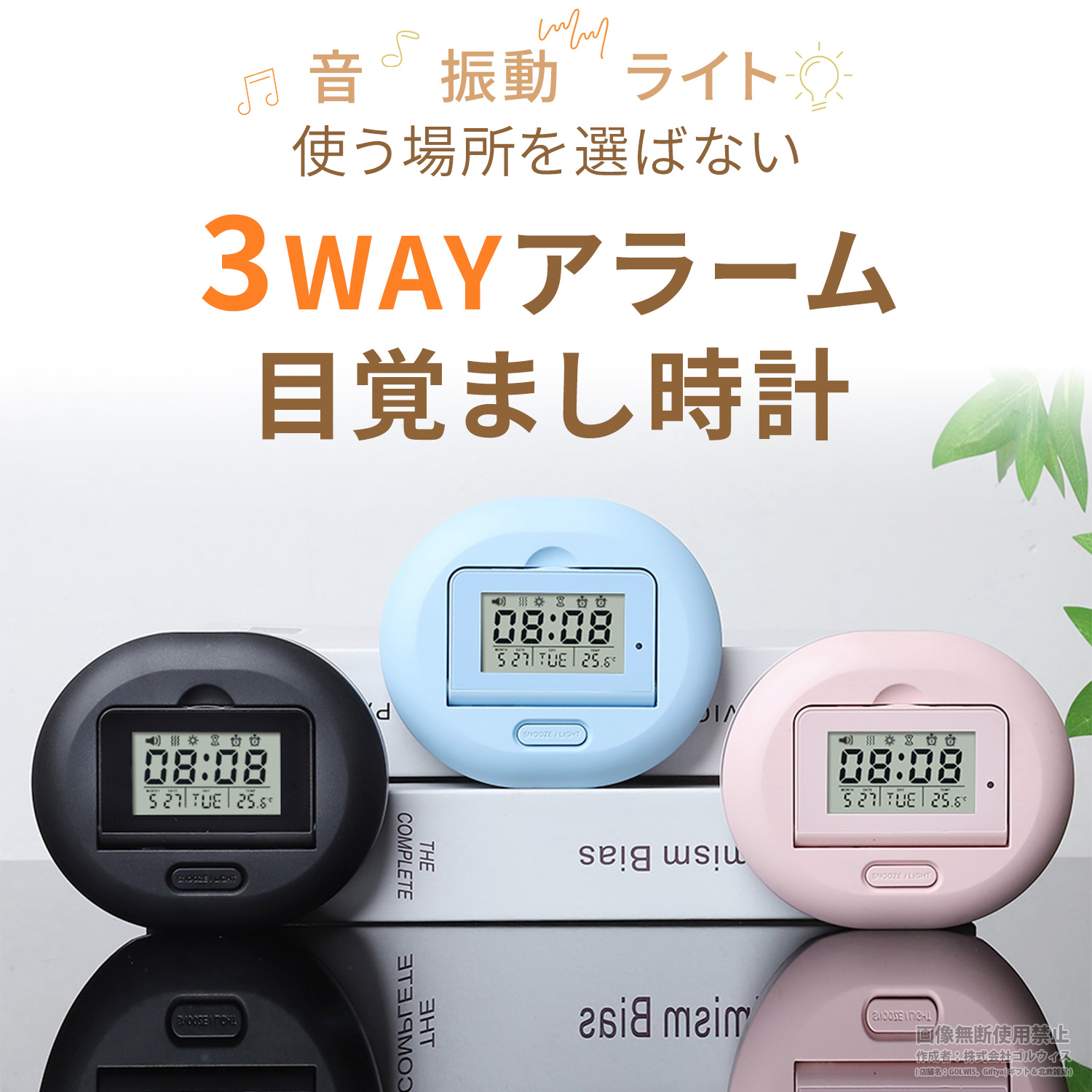 音、振動、ライト使う場所を選ばない3WAYアラーム目覚まし時計
