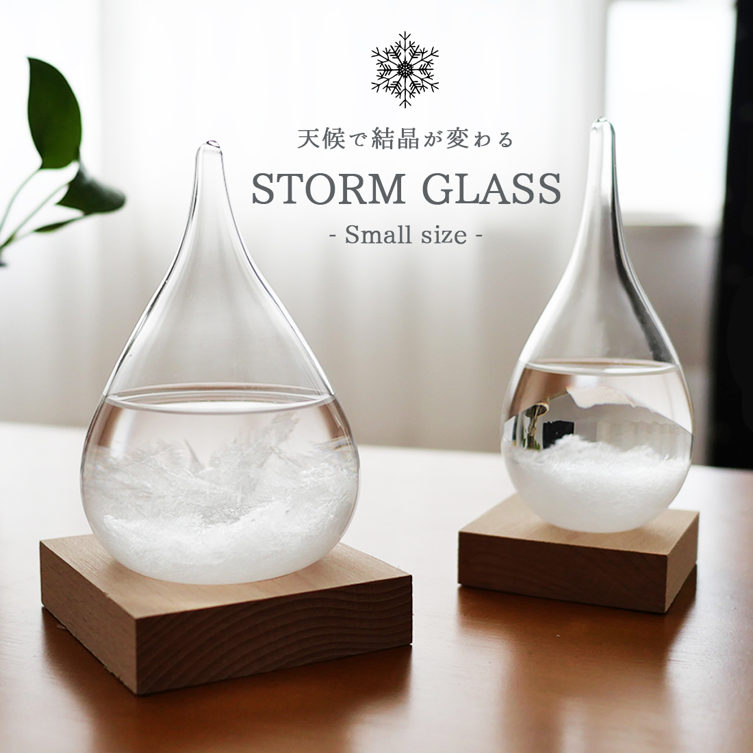ストームグラスとは結晶模様が天候や気温によって変化する美しいインテリアオブジェですストームグラスは19世紀のヨーロッパで航海士が気象予報に使用していた天気予報の道具ですかつての航海士や気象予報士は結晶の変化を観察することで天候の変化を予測していました結晶化現象については解明されていない謎が多く、現代では予測期としての実用は難しいですふしぎなインテリアとして結晶の変化をお楽しみ下さい天候による結晶模様の変化につきましては商品画像でまとめておりますので空模様の変化を意識するきっかけとしてお楽しみ下さいSサイズとMサイズはそれぞれ別の商品ページでの販売となりますご注意下さい※商品写真はできる限り実物の色に近づけるよう徹底しておりますが、 お使いのモニター設定、お部屋の照明等により実際の商品と色味が異なる場合がございます。 クリスマス プレゼント ギフト 贈り物 誕生日