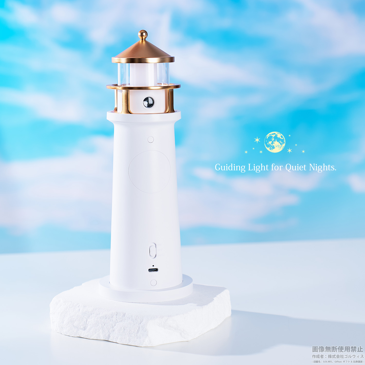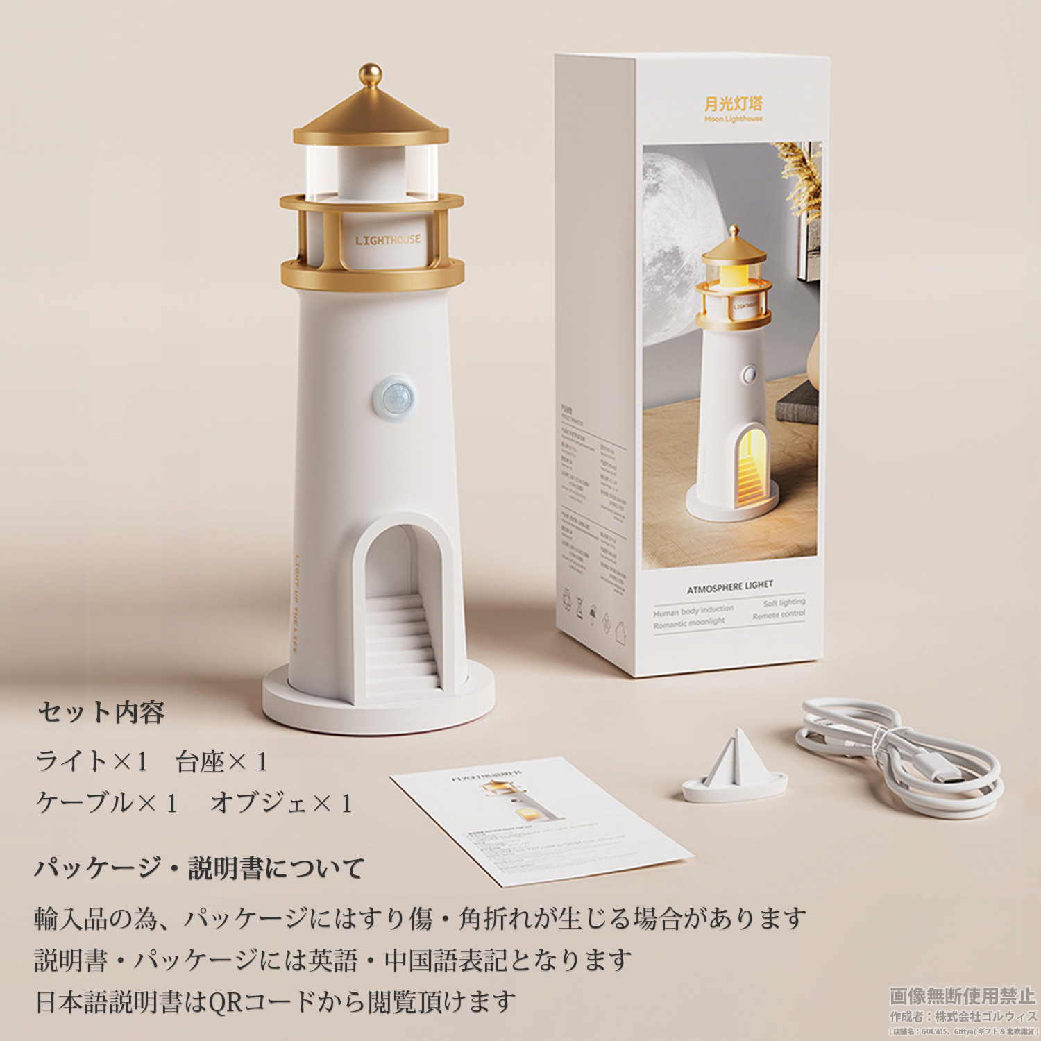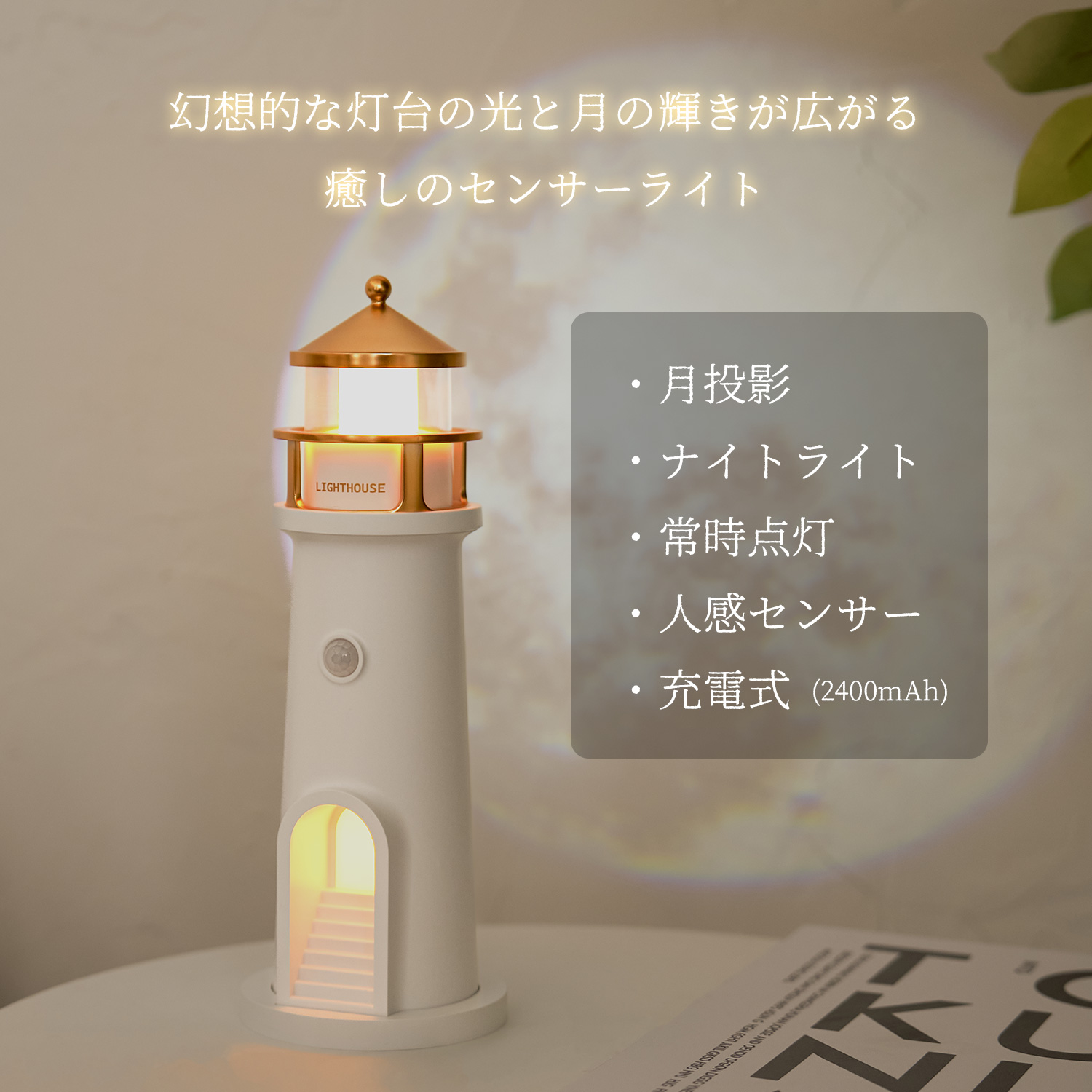 幻想的な灯台の光と月の輝きが広がる癒しのセンサーライト