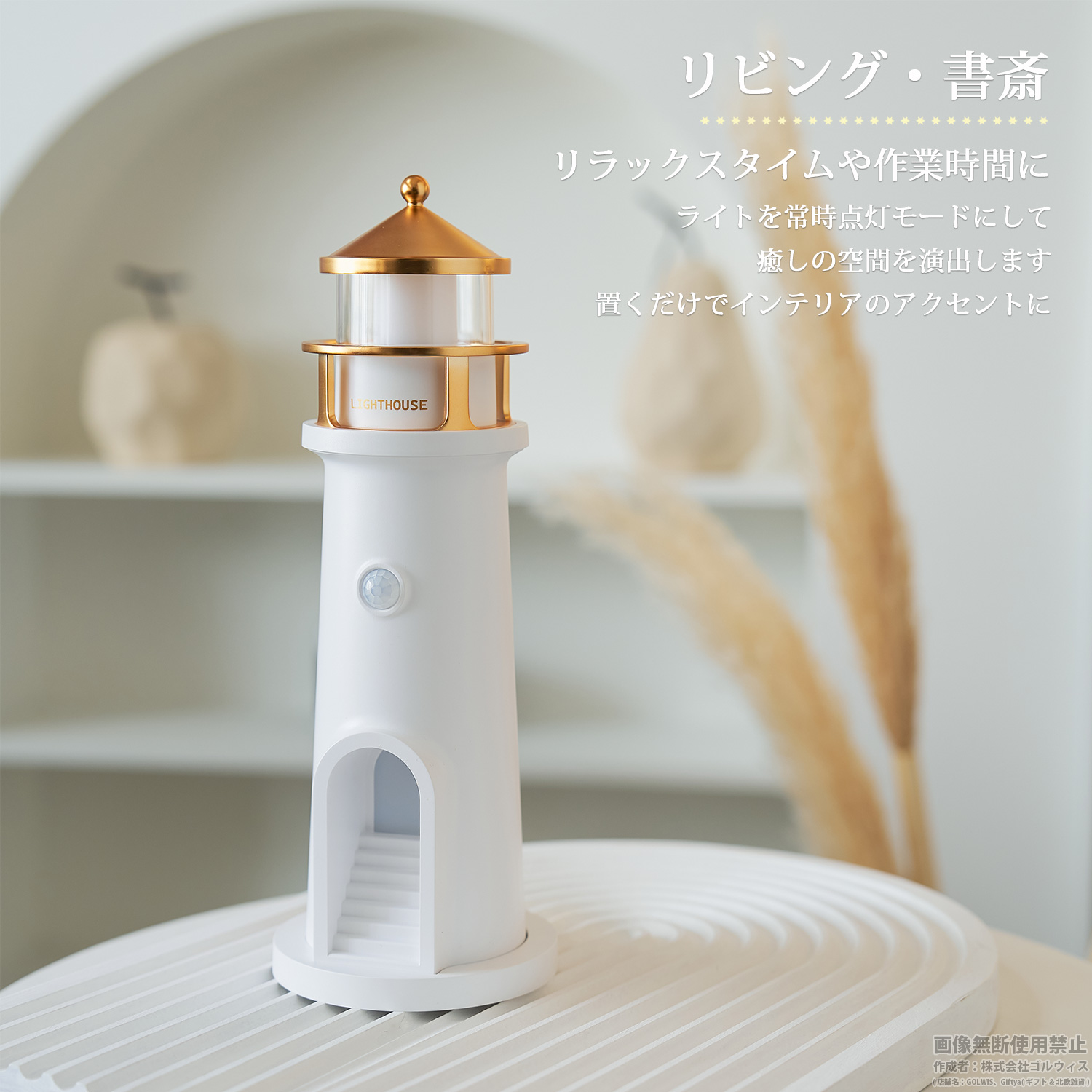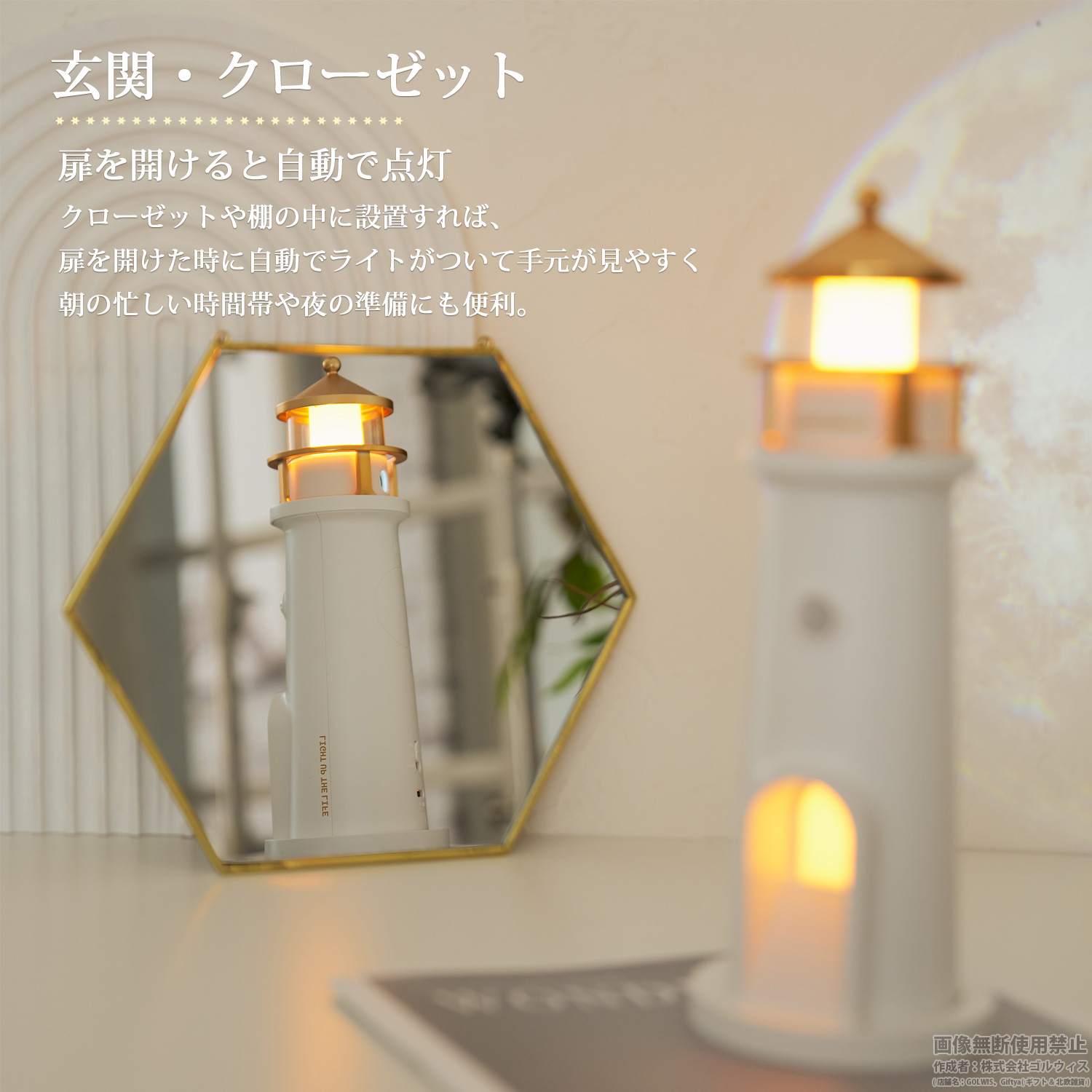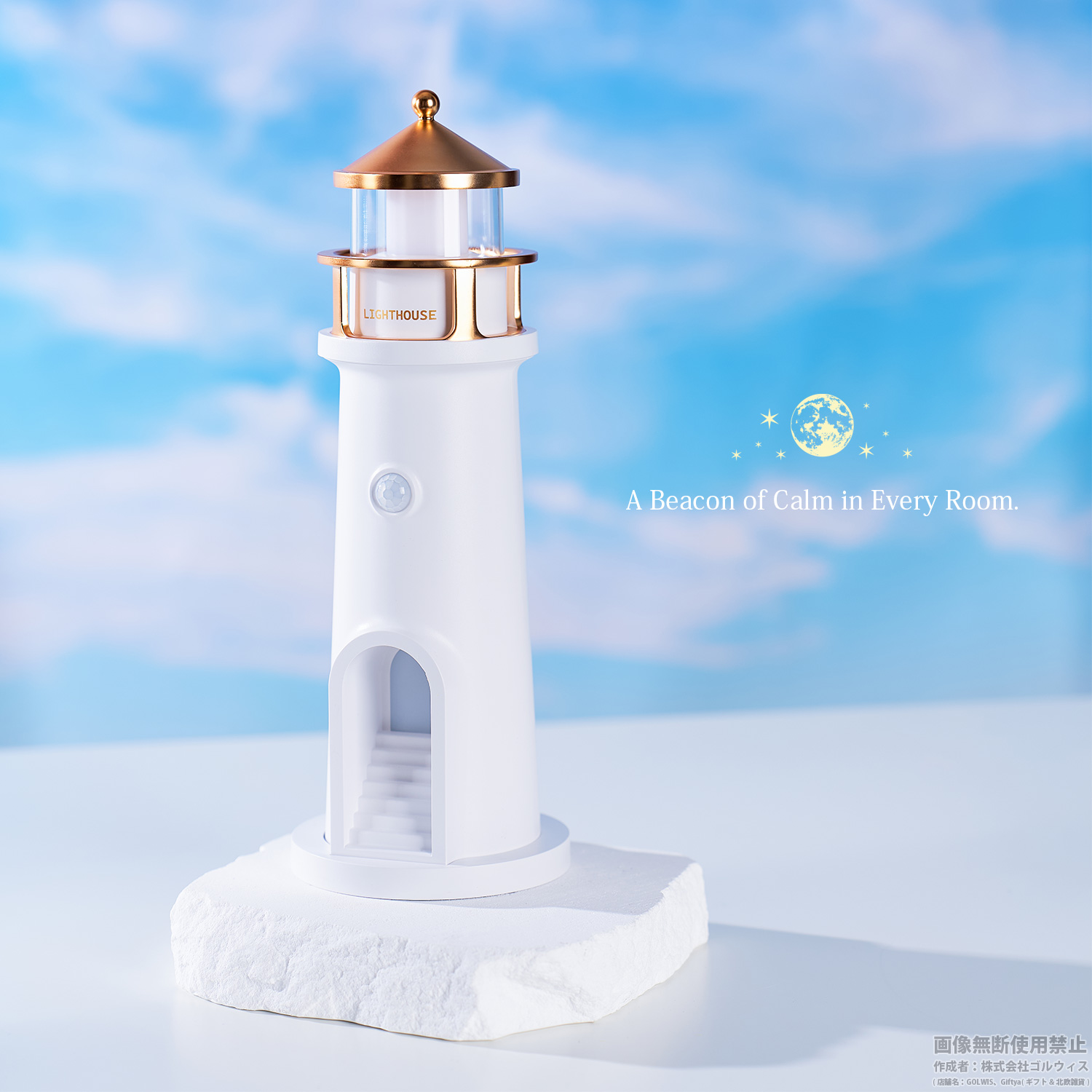 幻想的な灯台の光と月の輝きが広がる癒しのセンサーライト
