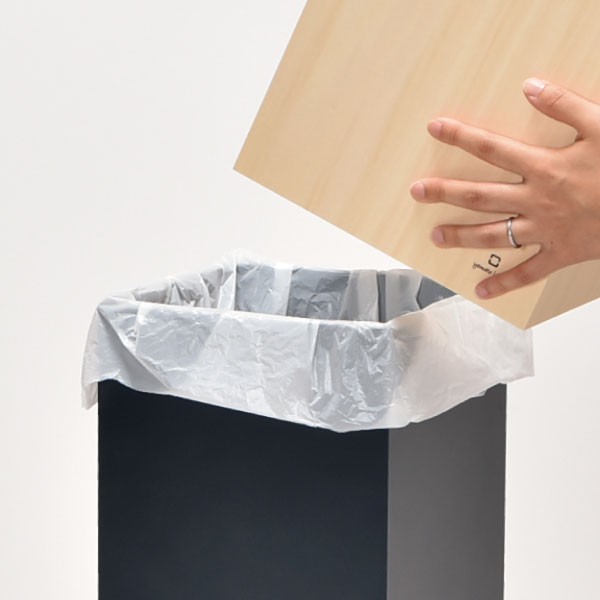 ゴミ袋をセットしたら上からカバーを被せて生活感のあるゴミ袋を隠すことができます。カバーはストッパーにもなり、ゴミ袋がズレることもありません。横45cm×縦50cmくらいのゴミ袋が使い勝手よくご使用いただけます。