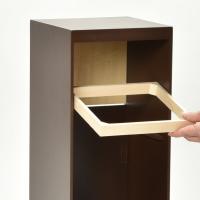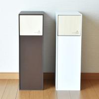 ウッドテイストが魅力のおしゃれなダストボックスです。スッとしたプロポーションはまるでインテリア。木目調がぬくもりのある雰囲気を演出してくれます。幅約19cmとスリムなのに容量はたっぷり。キッチンや家具の隙間にすっきり収まります。フロントオープンなのでゴミ捨ても簡単。上にちょとした物が置けるのも嬉しいポイントです。スイング式のフタは、ゴミ箱の中身が見えず、生活観を隠せます。一見ゴミ箱に見えないデザインで、小さいお子様やペットもいたずらしにくいです。カラーはお部屋やキッチンに合わせやすいブラウンとホワイト。高い技術で作られた日本製です。